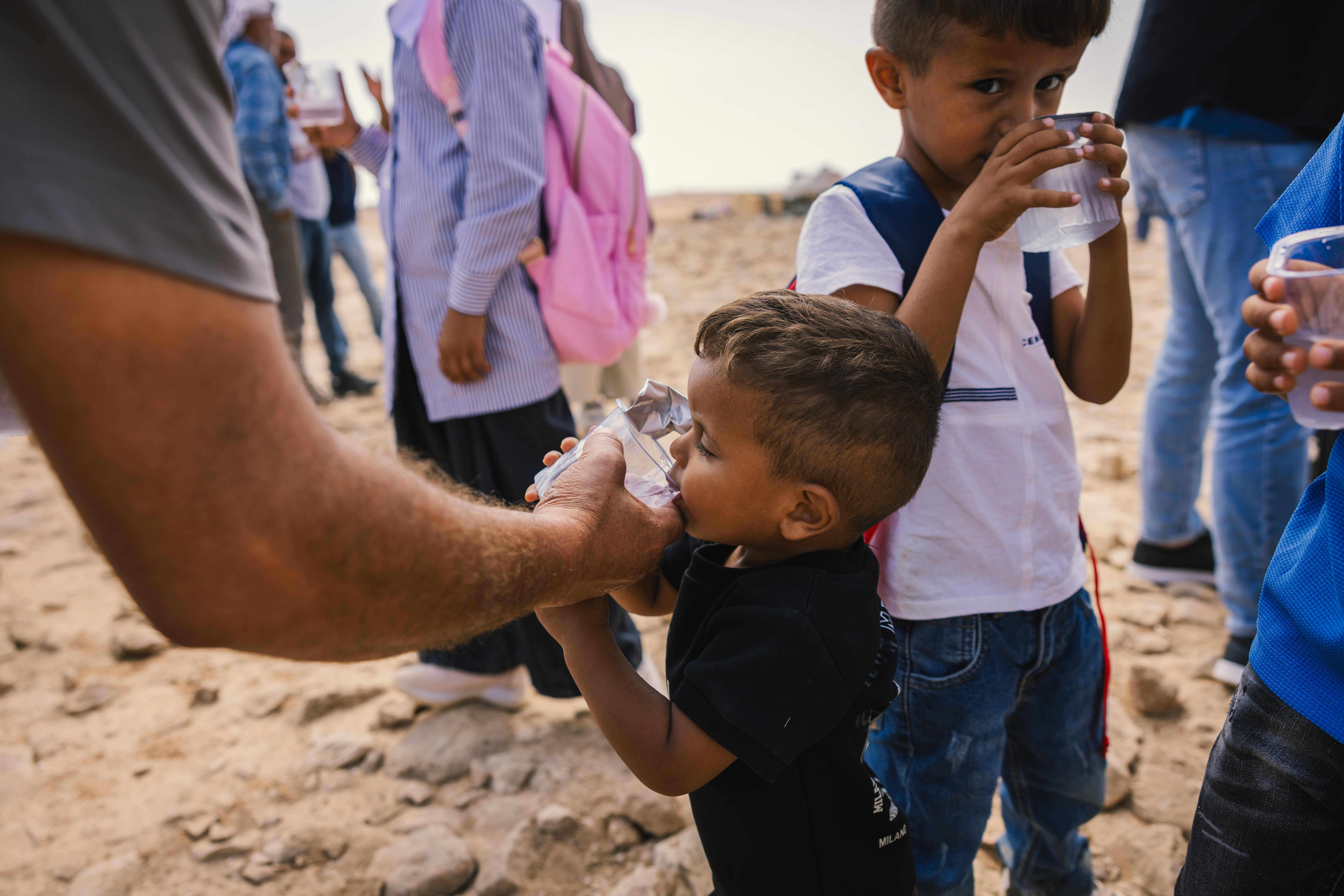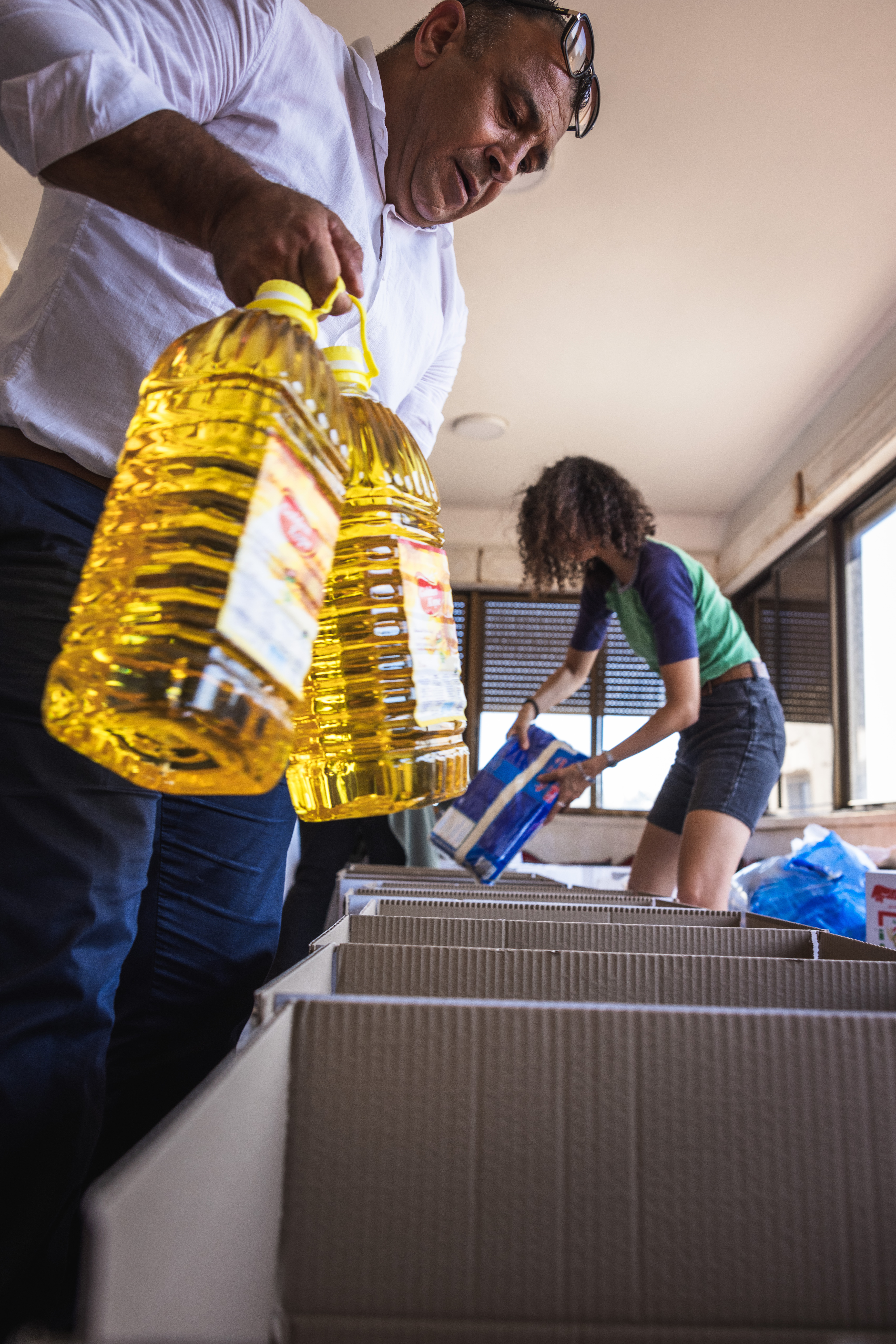 Ahmed gathers supplies for distribution throughout desert towns in the North Jordan Valley.