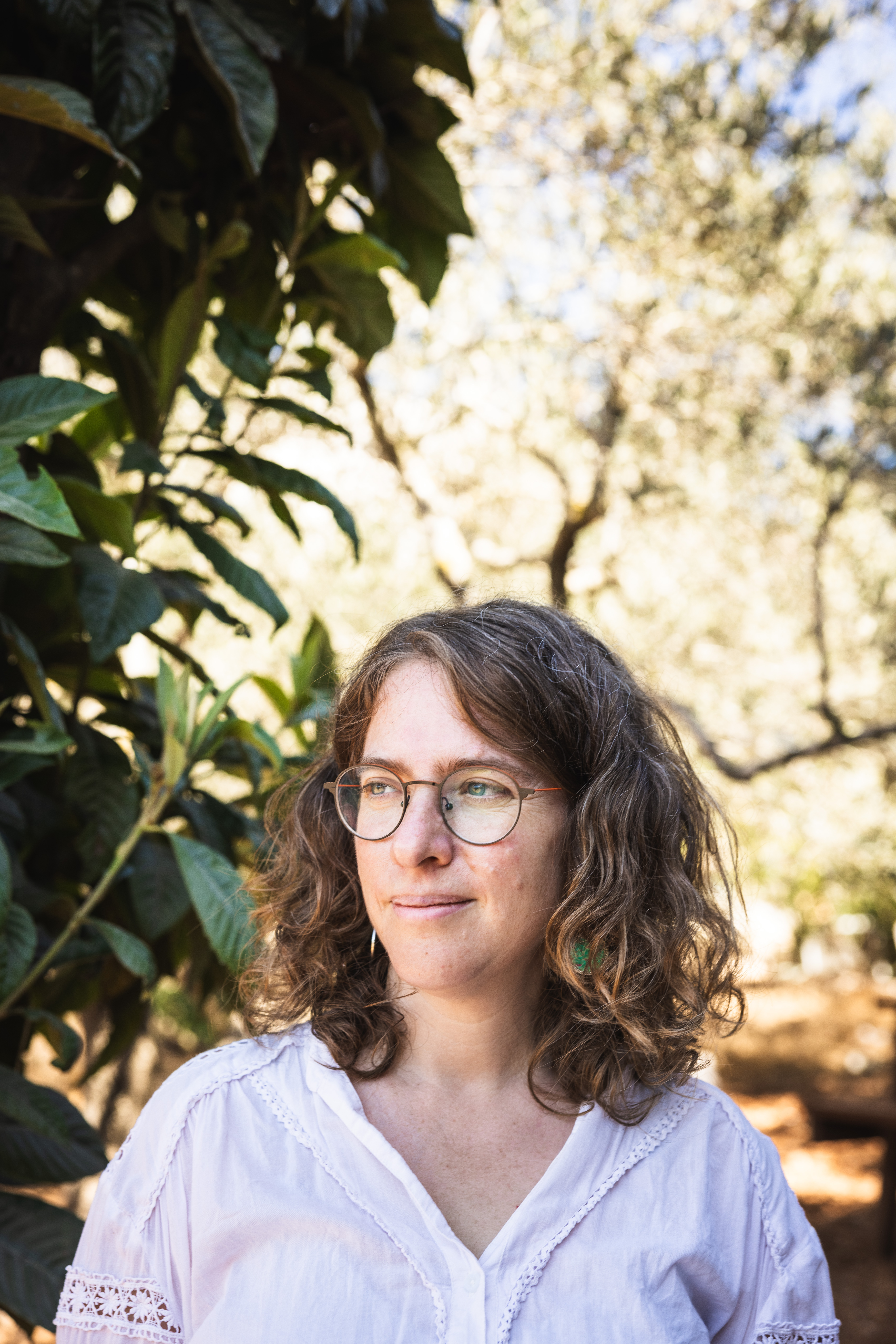 Eszter Koranyi, Israeli co-director of Combatants for Peace, poses for a portrait in an olive grove in the side yard adjacent to the CfP office in Beit Jala.