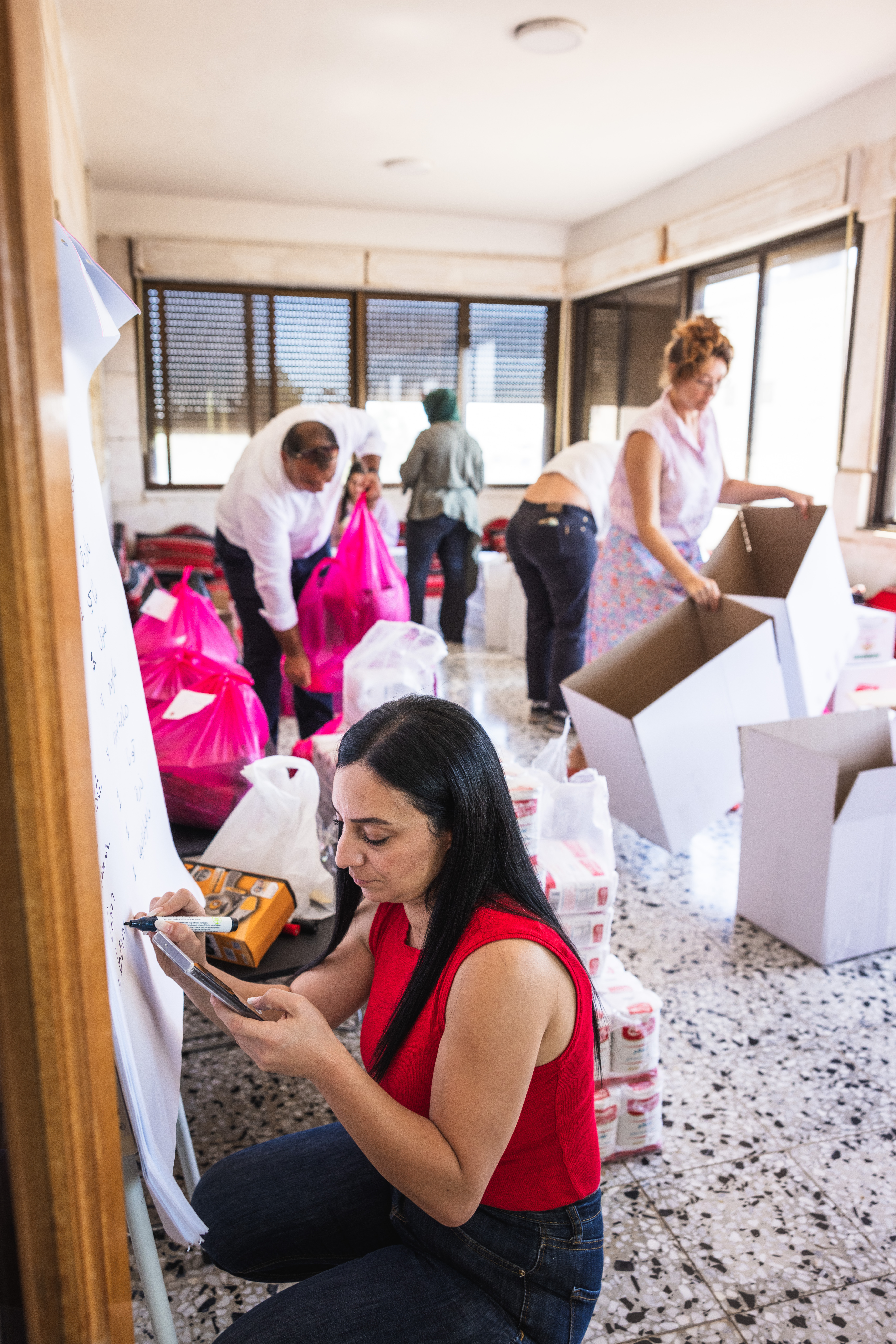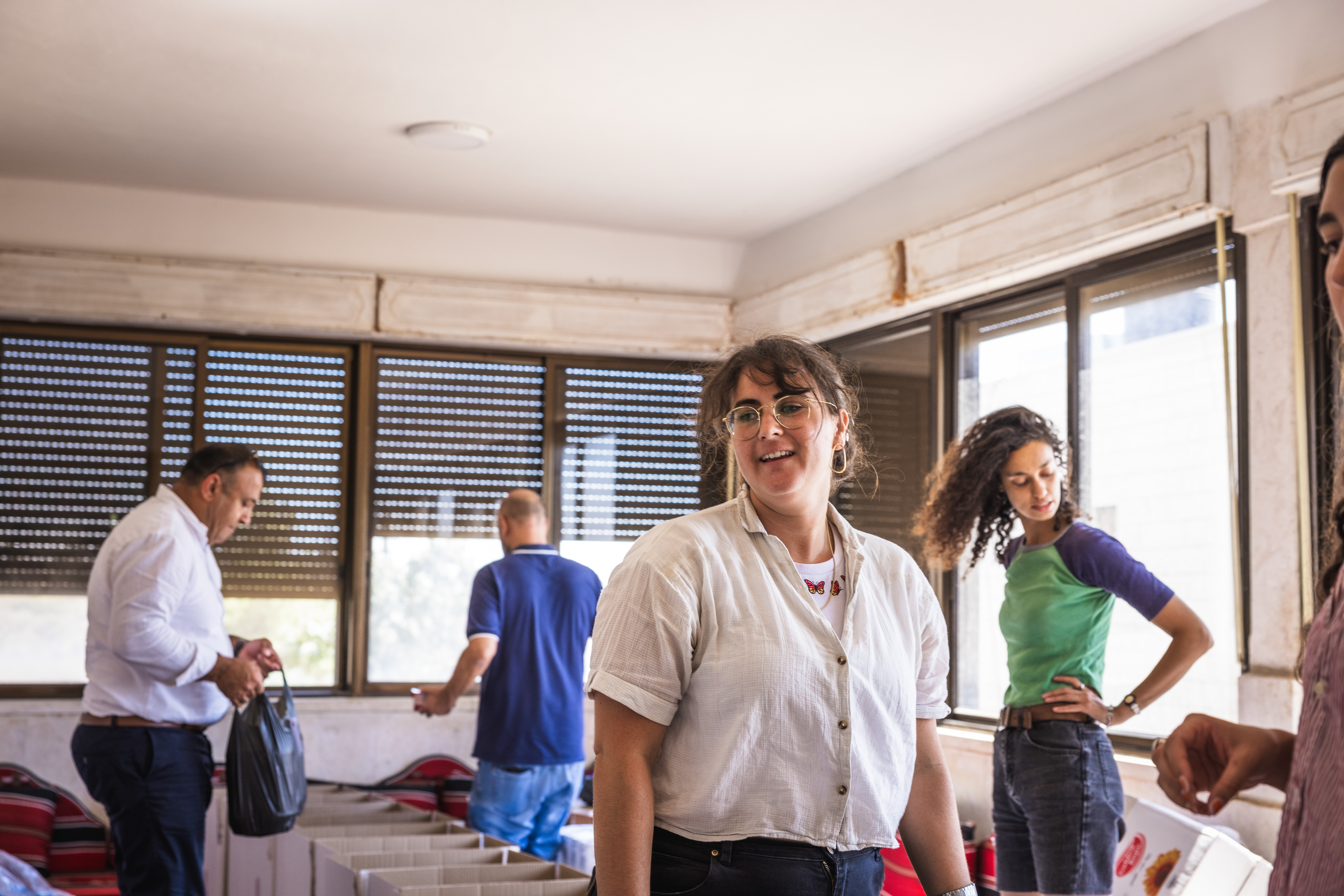 Combatants for Peace staff prepare supplies for distribution in their offices.
