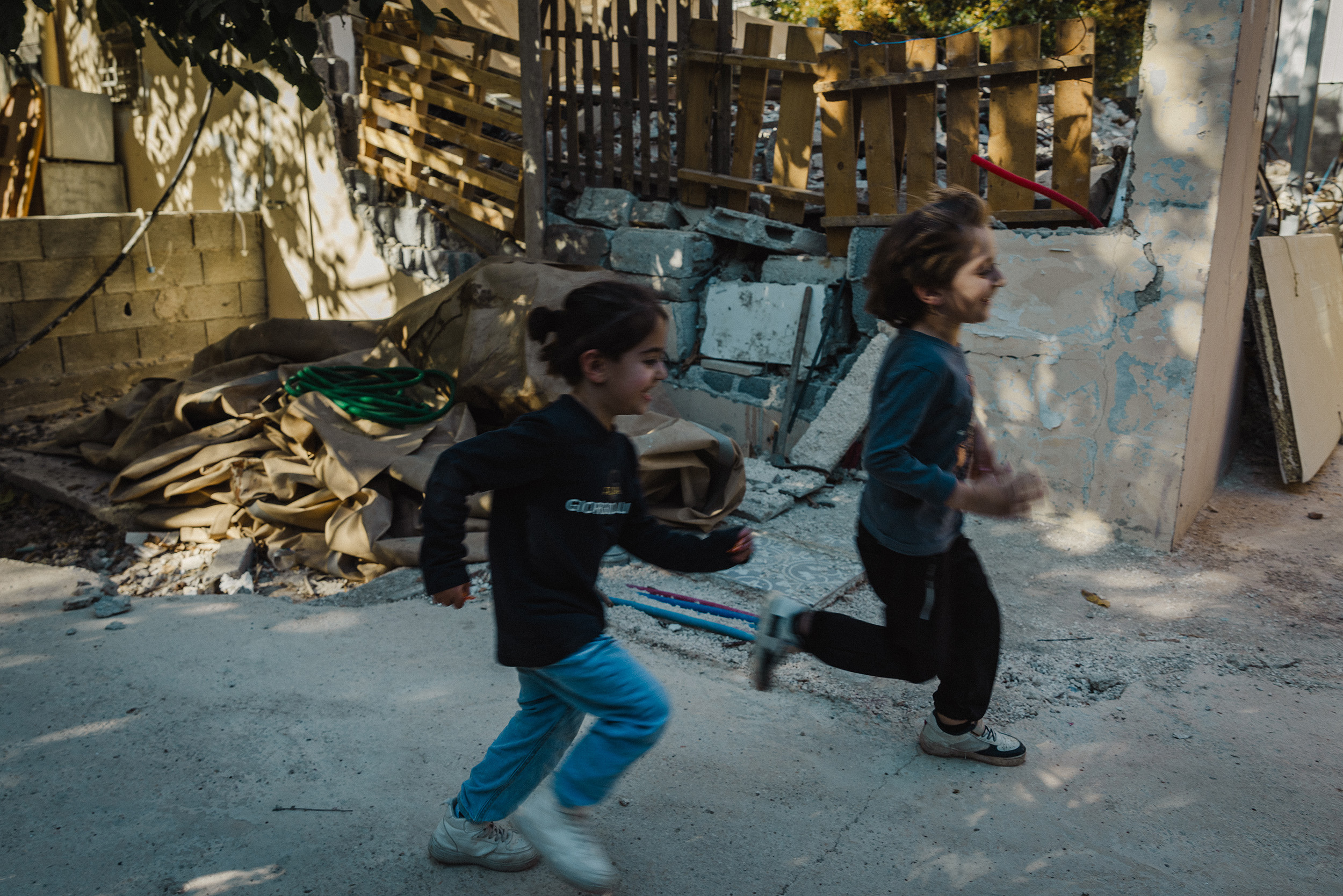 This is how she first heard the evacuation order for Nelle Street—“the area [where] we lived”—during an Israeli bombing campaign in 2014. Her entire extended family lived in the same seven-story building: mother, father, aunts, uncles, brothers, children. “Our building was targeted by missiles, by rockets, and it was demolished,” she heaves a sigh. “I worked very hard to get all the children out, my mother, my father… as many people from my family as I could get out from the rubble.” But her brother and his wife, who was pregnant with twins, couldn’t move. So she stayed with them. “I was thinking things will calm down and then I can manage to get them out,” she says.