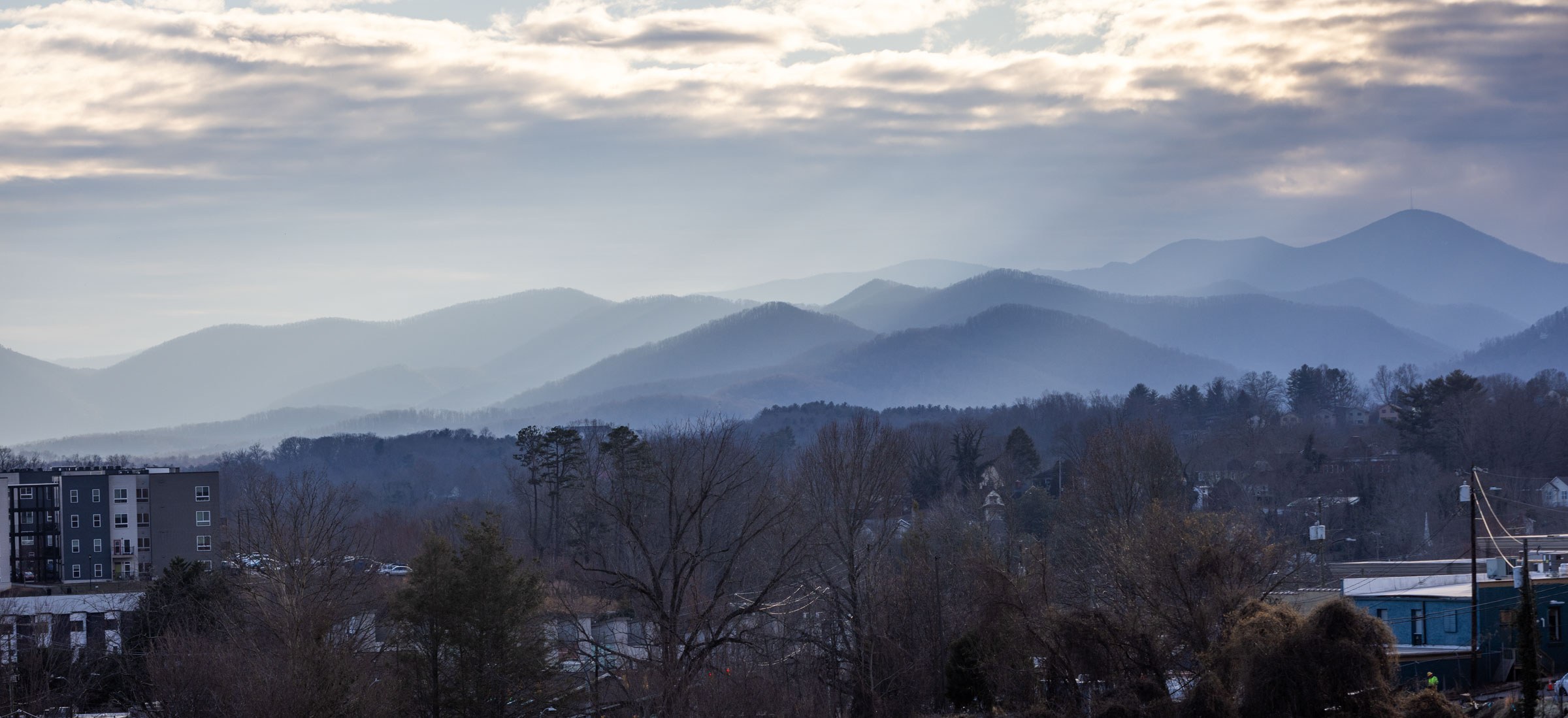 View of the the Blue Ridge Mountains from Asheville, North Carolina.