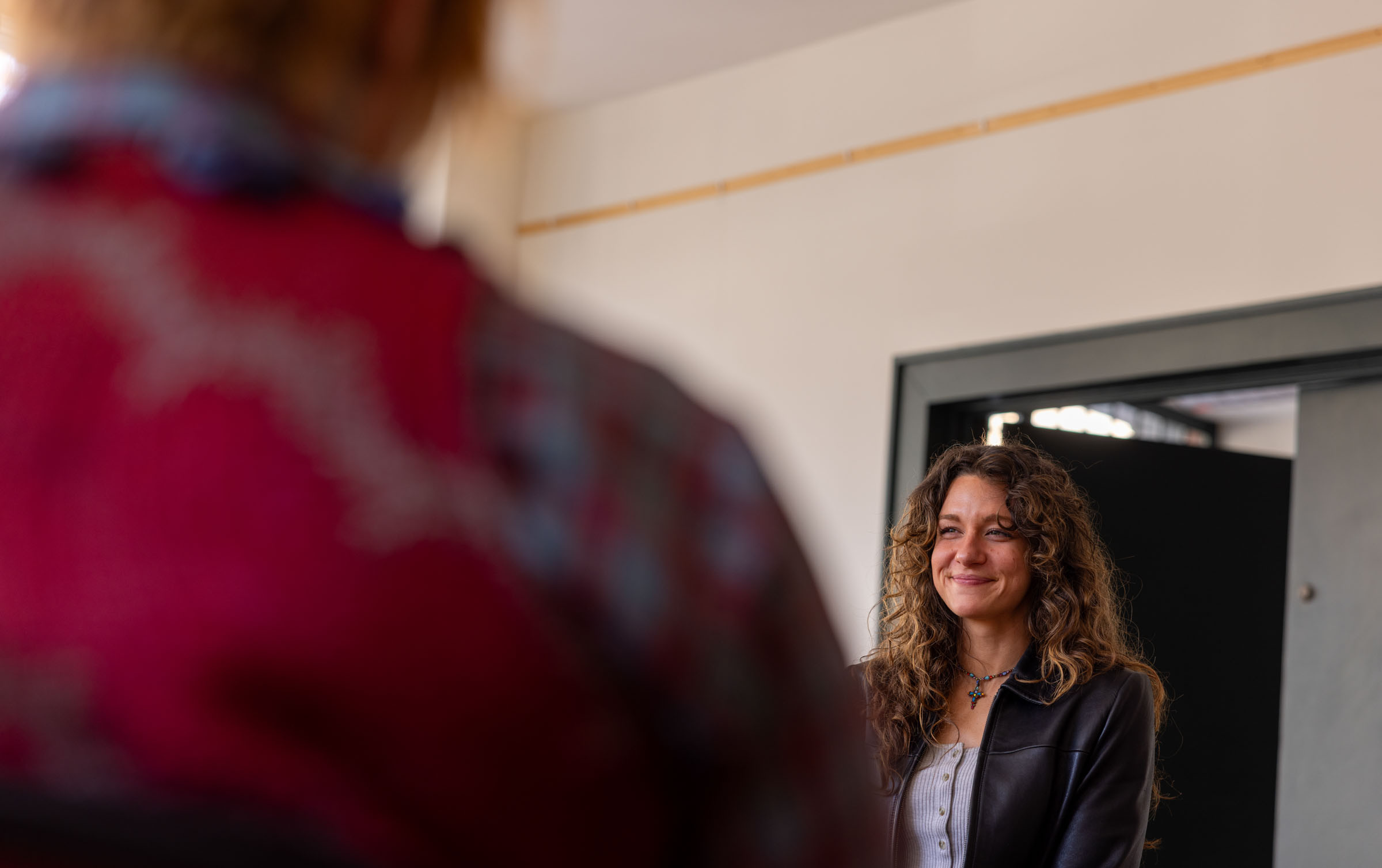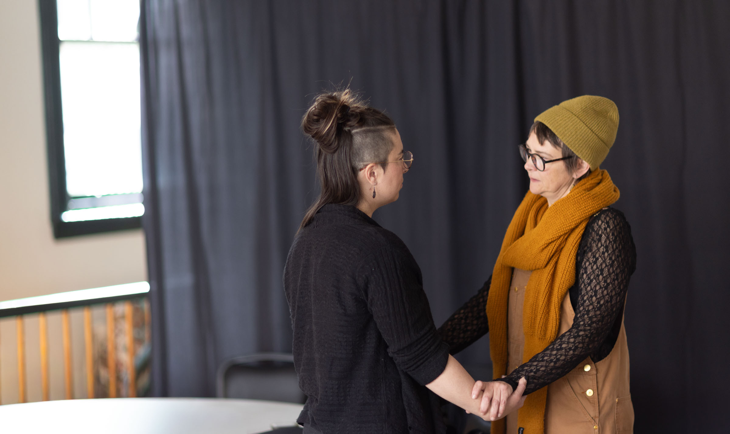 Jenesis Nicolaisen and Bea Reid share a moment of connection.