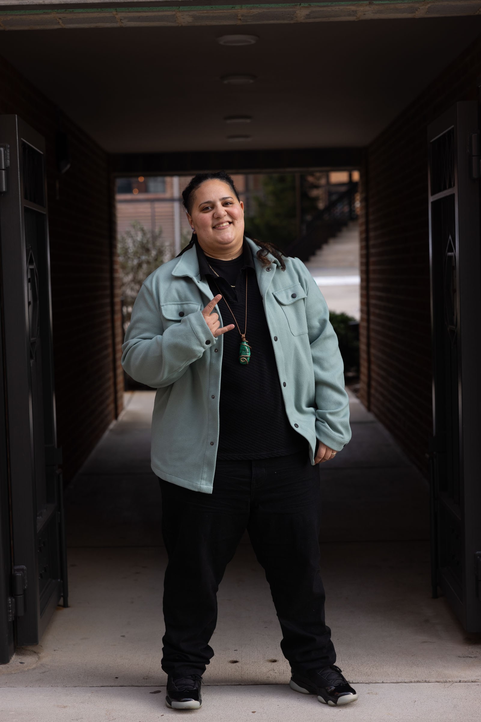 Sammy Vanek poses for a portrait in downtown Asheville.