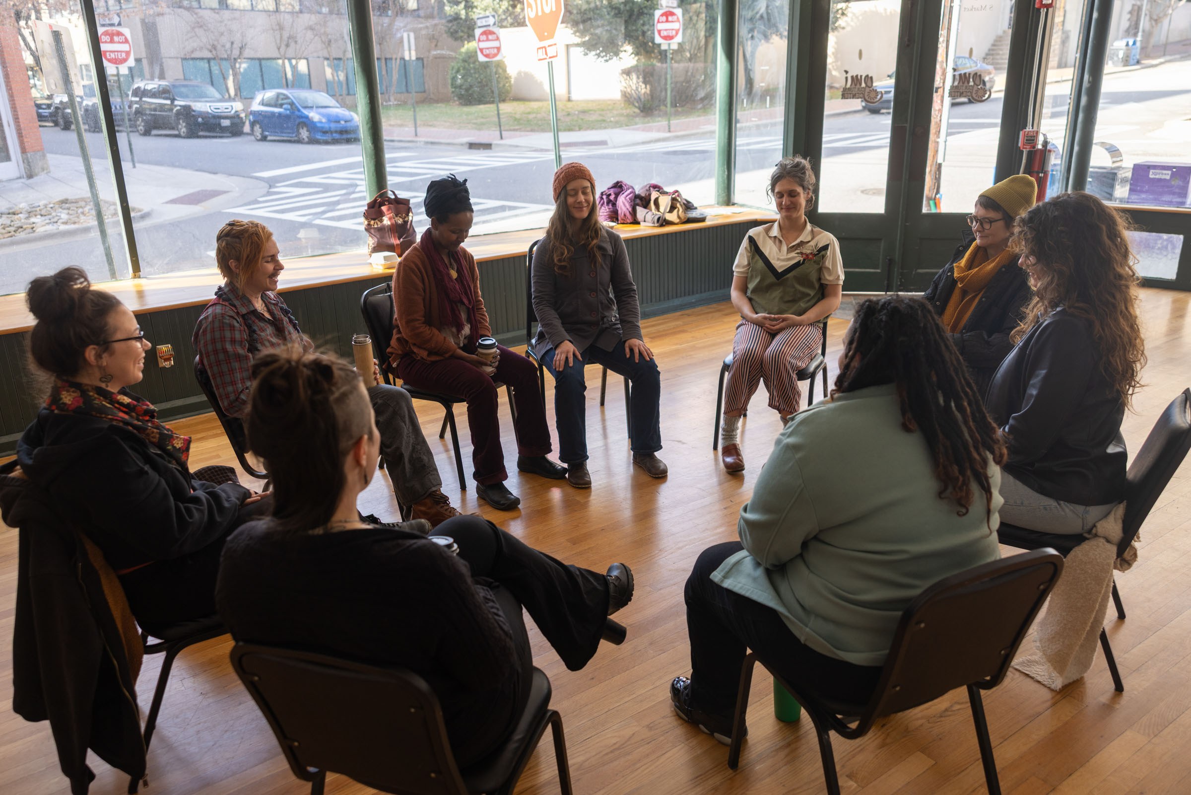 Melisa Gonzalez participates in Connection Practices with a group at the YMI Cultural Center in downtown Asheville, NC.